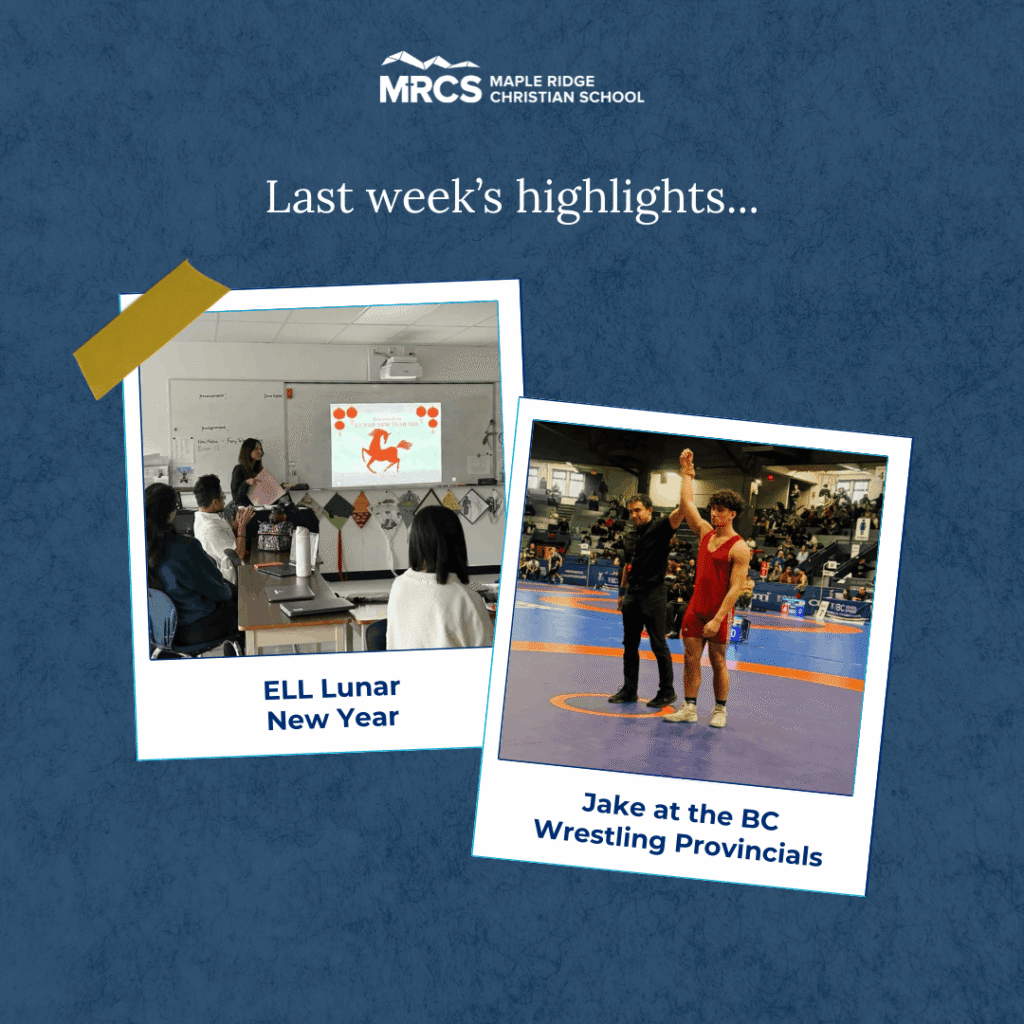 Last week, our ELL students shared a meaningful Lunar New Year celebration with our community, helping us learn more about the traditions, stories, and cultural significance behind this special time. We also celebrated student athlete Jake, who represented MRCS at the BC Wrestling Provincials — an incredible accomplishment and a proud moment for our school community.