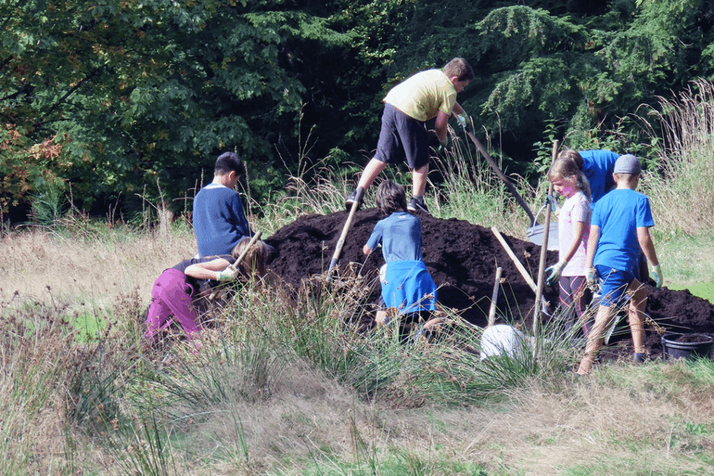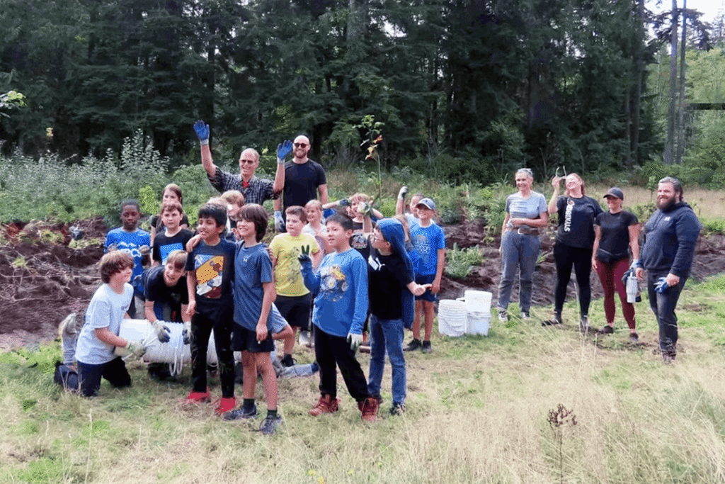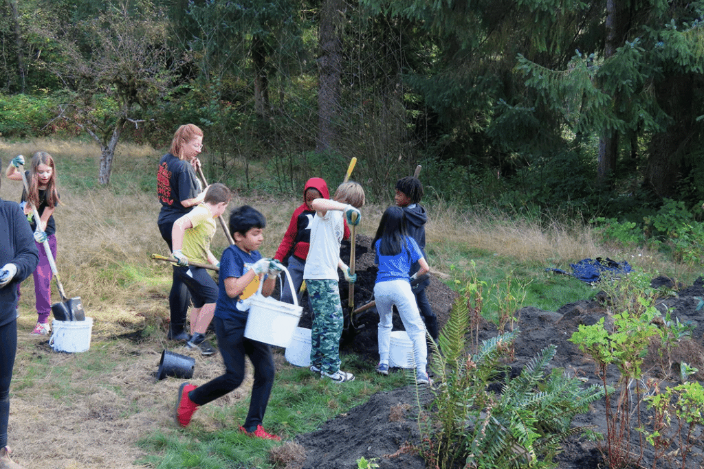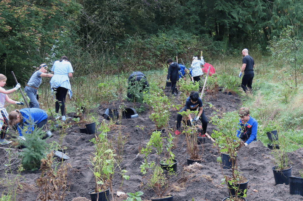 What began years ago as a small class project raising salmonids has grown into a full stewardship partnership with Metro Vancouver Parks, Kanaka Creek Watershed Stewardship Center, and the Bell-Irving Hatchery (KEEPS). During the Fall the classroom moves outdoors to Kanaka Creek Regional Park to assist in the planting season. This year alone, students planted and mulched around 500 trees and bushes.